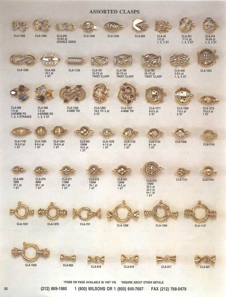 Milsons Findings. Distributor of Gold Findings and Castings to the Jewelry Trade