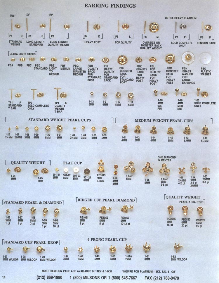Milsons Findings. Distributor of Gold Findings and Castings to the Jewelry Trade