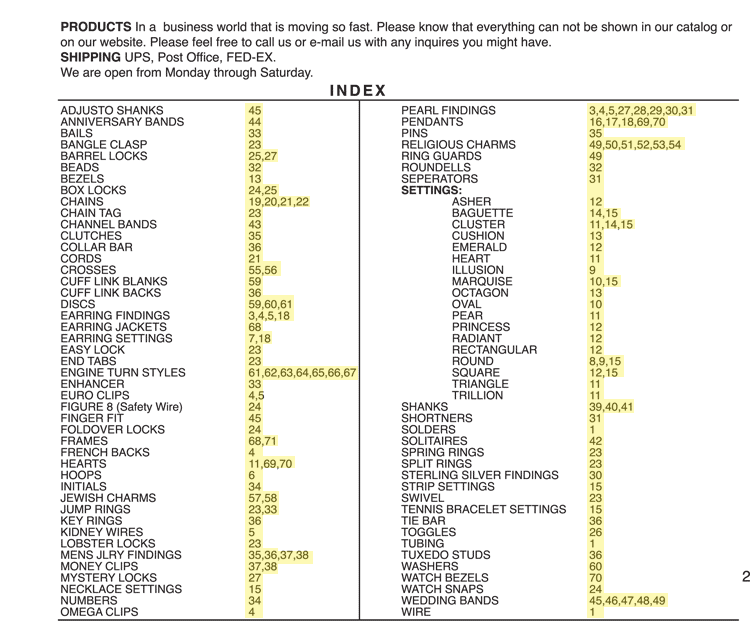 Distributor of Gold Findings and Castings to the Jewelry Trade